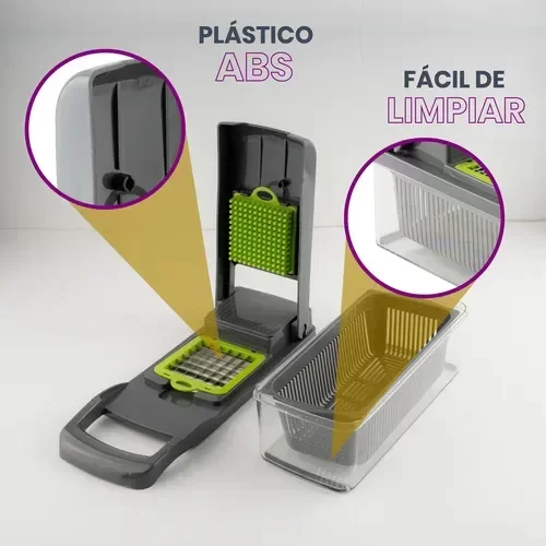 El diseño incluye un taper y un colador, lo que permite organizar y escurrir rápidamente los ingredientes para una experiencia culinaria más eficiente. Además, su mantenimiento es sencillo, asegurando una limpieza rápida después de cada uso, y su durabilidad significa que podrás disfrutar de este cortador sin preocupaciones a largo plazo.