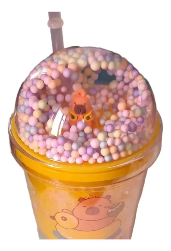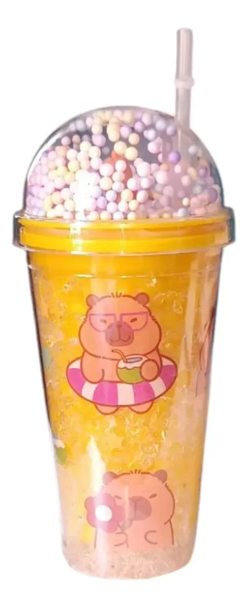 VASO REFRIGERANTE CAPIBARA CON BRILLOS Y SORBETE MATERIAL PLÁSTICO CAPACIDAD 500ML